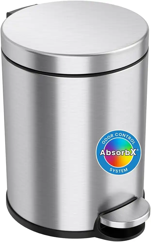 iTouchless SoftStep 1.3 Gallon Slim Bathroom Trash Can with Deodorizer and Removable Inner Bucket, Stainless Steel, 5 Liter Round Step Pedal Garbage Bin for Bedroom, Home, Office Cubicle