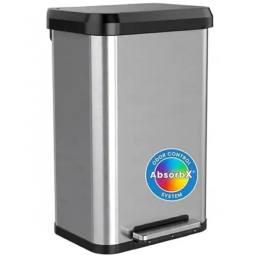 iTouchless SoftStep EXP 13.2 Gallon Step Pedal Trash Can with AbsorbX Odor Filter, Stainless Steel with Dent-Proof Plastic Lid, 50 Liter Garbage Kitchen Bin for Home, Office, Business, Store