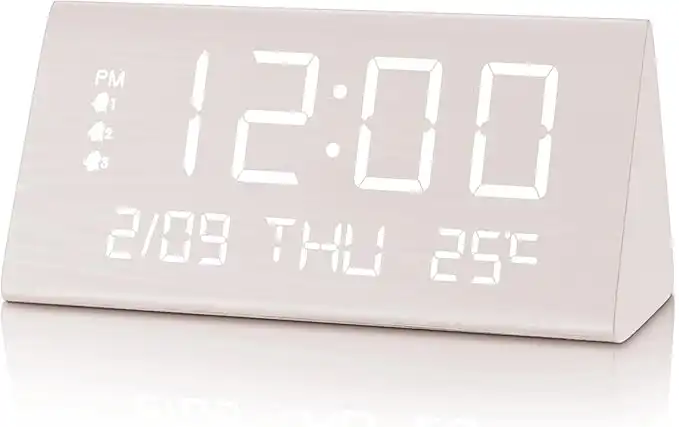 JALL Digital Alarm Clock, with Wooden Electronic LED Time Display, 3 Alarm Settings, Weekday/Weekend Mode, Temperature Detect, Wood Made Electric Clocks for Office, Bedroom, Bedside