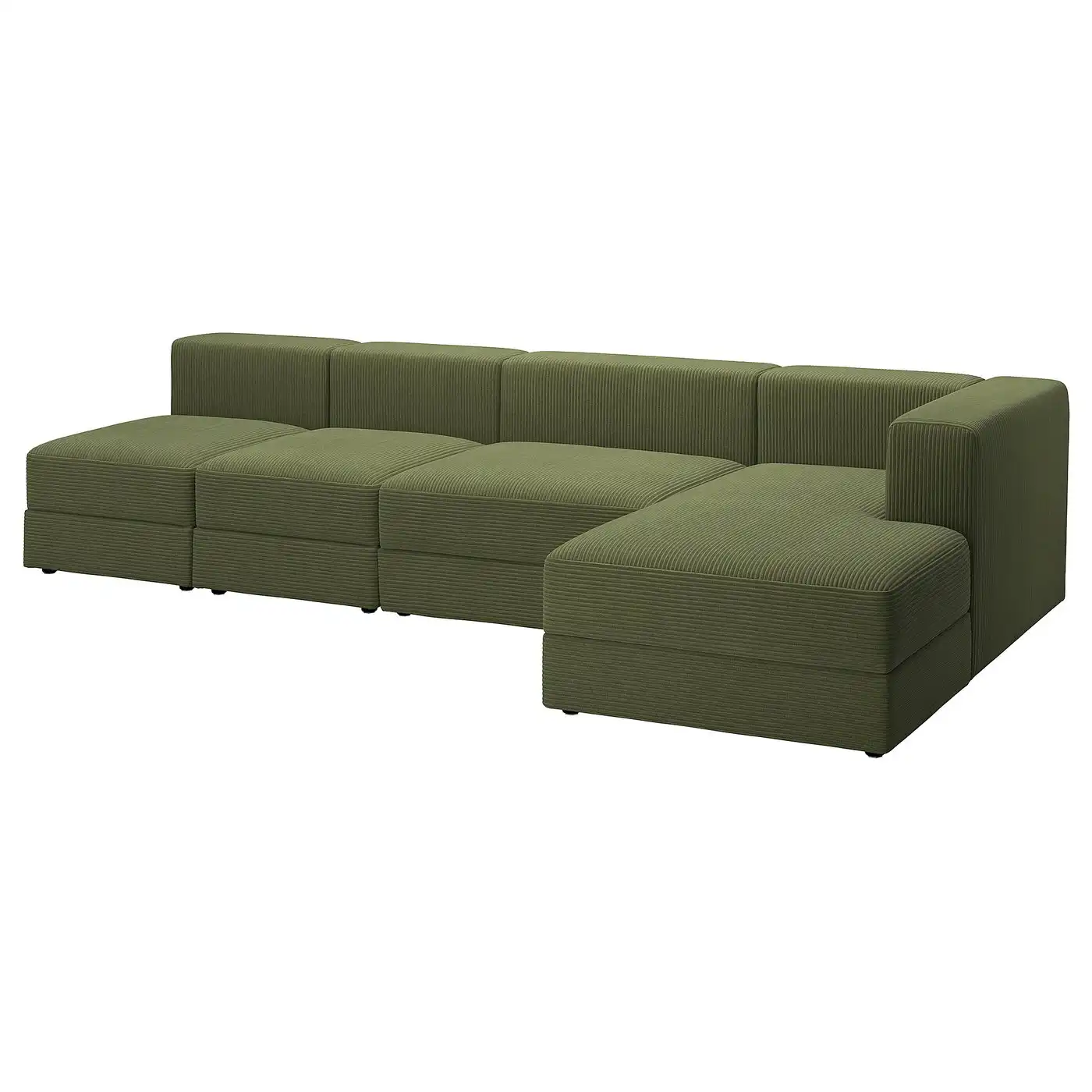 JÄTTEBO 4,5-seat mod sofa w chaise longue - right/Samsala dark yellow-green