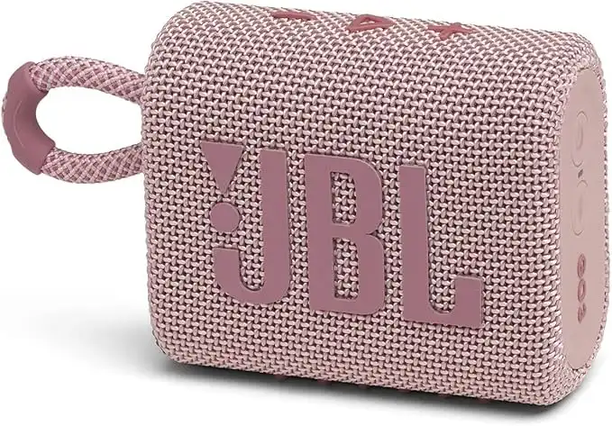 JBL Go 3 Portable Waterproof Speaker with JBL Pro Sound, Powerful Audio, Punchy Bass, Ultra-Compact Size, Dustproof, Wireless Bluetooth Streaming, 5 Hours of Playtime - Pink, JBLGO3PINK, Small