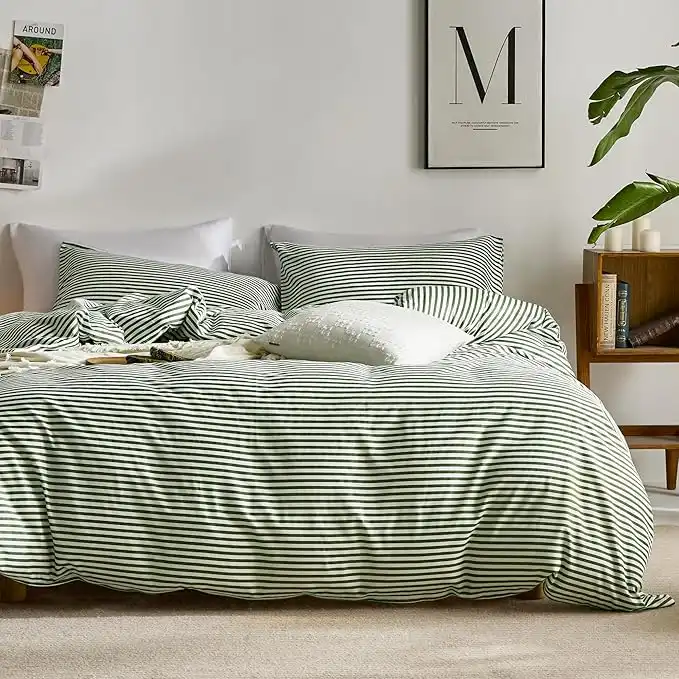 amazon.aeJELLYMONI 100% Natural Cotton 3pcs Striped Duvet Cover Sets,White Duvet Cover with Green Stripes Pattern Printed Comforter Cover,with Zipper Closure & Corner Ties(King Size)