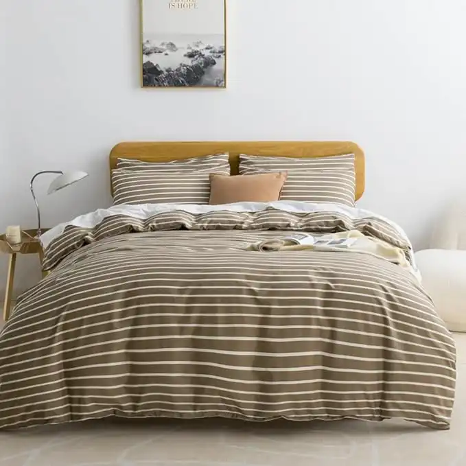 amazon.aeJELLYMONI 100% Natural Cotton 3pcs Striped Duvet Cover Sets,White Duvet Cover with Dark Grey Stripes Pattern Printed Comforter Cover,with Zipper Closure & Corner Ties(King Size)