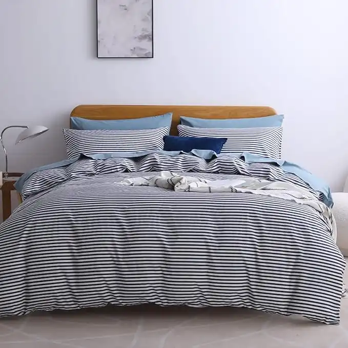 JELLYMONI 100% Natural Cotton 3pcs Striped Duvet Cover Sets,White Duvet Cover with Navy Blue Stripes Pattern Printed Comforter Cover,with Zipper Closure & Corner Ties(King Size) — Price History & Tracker | DeserTracker