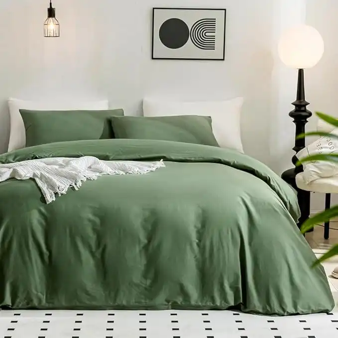 JELLYMONI Green Duvet Cover Twin Size - 100% Washed Cotton Linen Feel Textured Comforter Cover, 2 Pieces Breathable Soft Bedding Set with Zipper Closure (Green, Twin 68"x90") — Price History & Tracker | DeserTracker