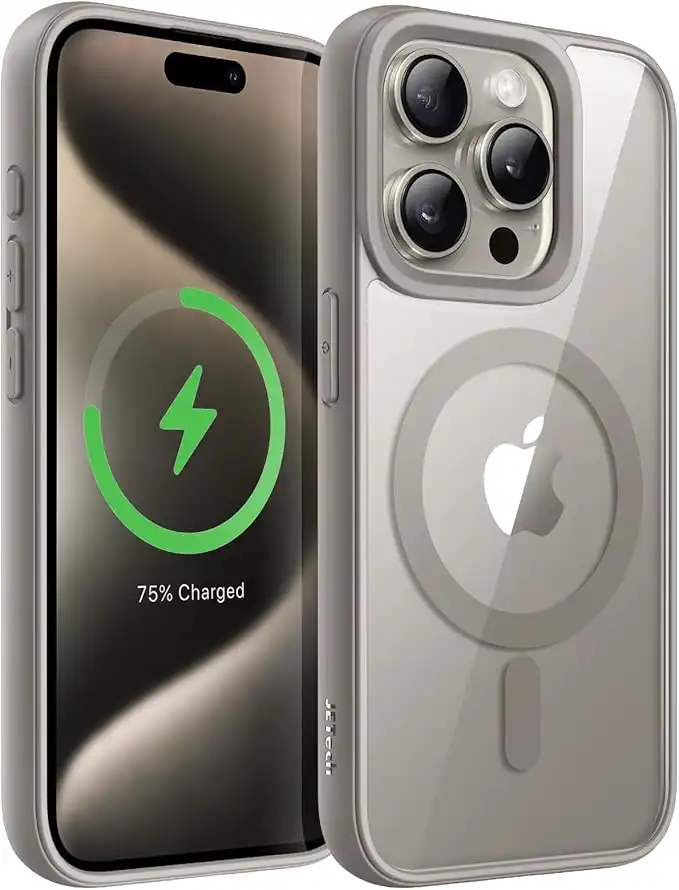 JETech Magnetic Case for iPhone 15 Pro Max 6.7-Inch Compatible with MagSafe, Shockproof Phone Bumper Cover, Solid Color Matte TPU Frame, Anti-Scratch Clear Back (Natural Titanium)