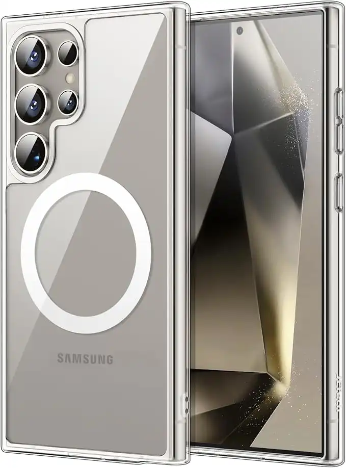 JETech Magnetic Case for Samsung Galaxy S24 Ultra 5G, Compatible with MagSafe, Shockproof Protective Phone Cover, Non-Yellowing Hard Clear PC Back (Clear)
