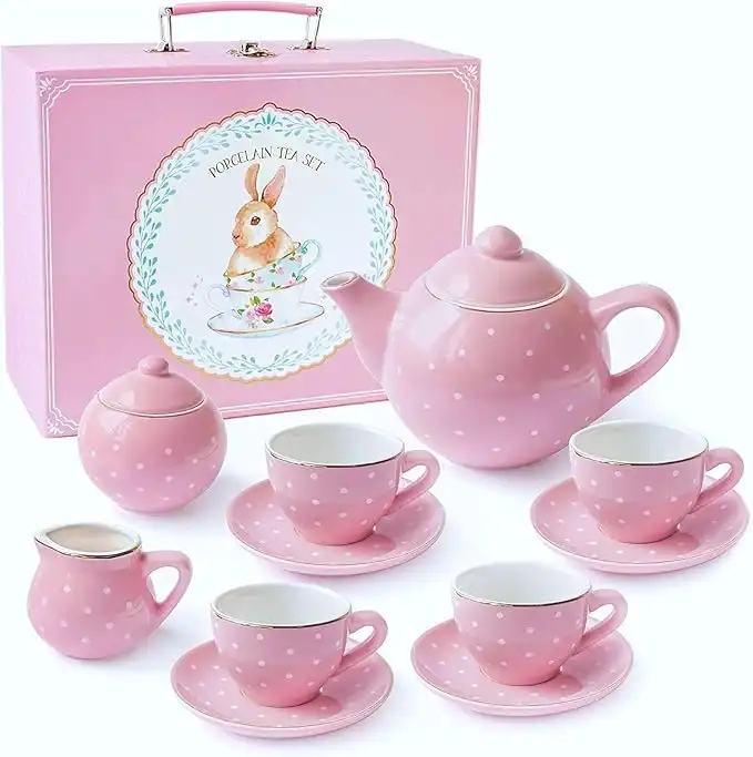 Jewelkeeper Porcelain Tea Set for Little Girls, Pink Polka Dot, 13 Pieces, multi, D1201 — Price History & Tracker | DeserTracker