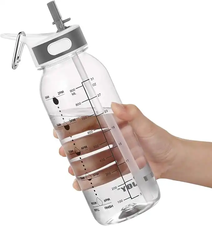 amazon.aeJIMACRO Water Bottle,BOTTLED JOY 1 Litre Water Bottle with Straw and Handle BPA-Free, Daily Water Intake Bottle with Time Markings Tracker to Remind the Drinking Time, Ideal for Gym Office Hydration