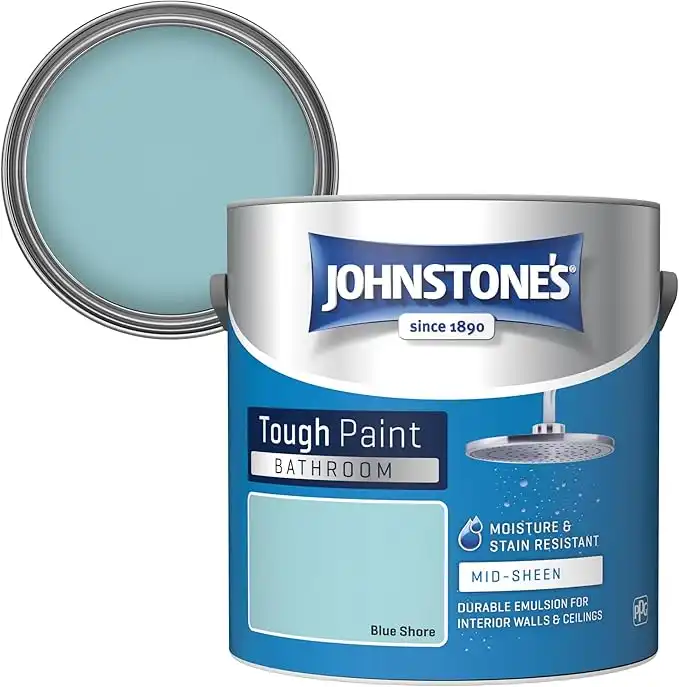 Johnstone's - Bathroom Paint - Blue Shore - Mid Sheen Finish - Stain Blocker Paint - Use in Moist & Damp Areas - Low Odour- Dry in 1-2 Hours - 12m2 Coverage per Litre - 2.5L — Price History & Tracker | DeserTracker