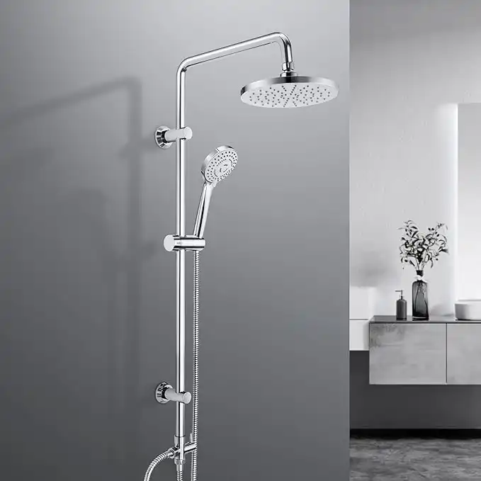 amazon.aeJOHO Shower Column without Taps Adjustable Fixings Heavy Duty Wall Set Bath Shower Shower Bathroom with Rain Shower Effect ABS D20 cm