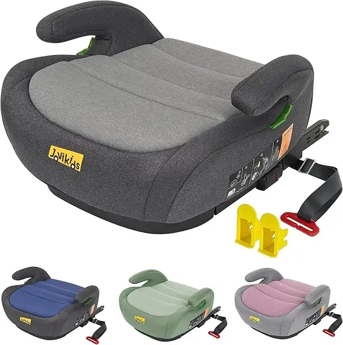 Jovikids I-Size Booster Seat for Car with ISOFIX, 125-150cm (Group 2/3, 6-12 Years), Portable Car Seats for Kids, Comfortable, Compact, Convenient for Everyday Use, Great for Travel, ECE R129, Black