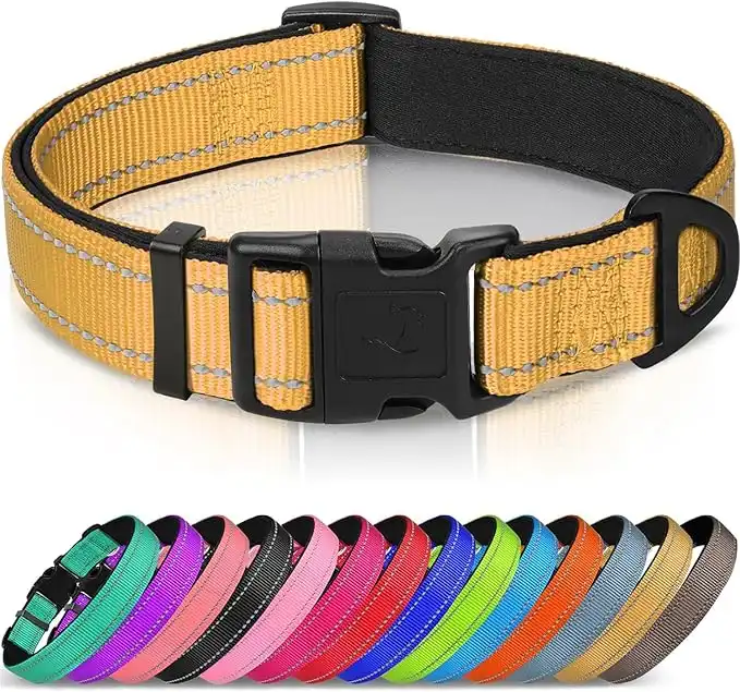 Joytale Dog Collar, Reflective Padded Neoprene Pet Collar, Adjustable Nylon Collars for Extra Small and Puppy Dogs, XS, Khaki