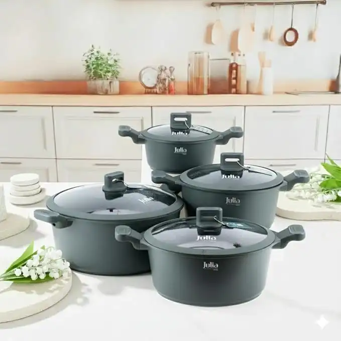 Julia Elite-Pro Cookware Set 8 Pieces Green Granite Non-Stick Cooking Pots With Glass Lids And Soft-Touch Handles, Durable Stylish Kitchen Cookware Set For All Stove Types — Price History & Tracker | DeserTracker