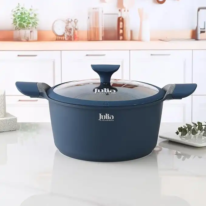 Julia Elite-Uni Casserole Cookware With Lid 20cm Blue Granite Non-Stick Cooking Pot With Glass Cover And Soft-Touch Handles, Compact High-Performance Design For Daily Cooking On All Stove Types — Price History & Tracker | DeserTracker