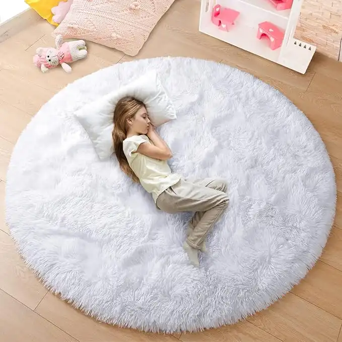 amazon.aejunovo Round Rug 4x4 Feet Fluffy Soft Area Rugs for Kids Girls Room Princess Castle Plush Shaggy Carpet Cute Circle Nursery Rug for Kids Girls Bedroom Baby Room Home Decor Circular Carpet, White