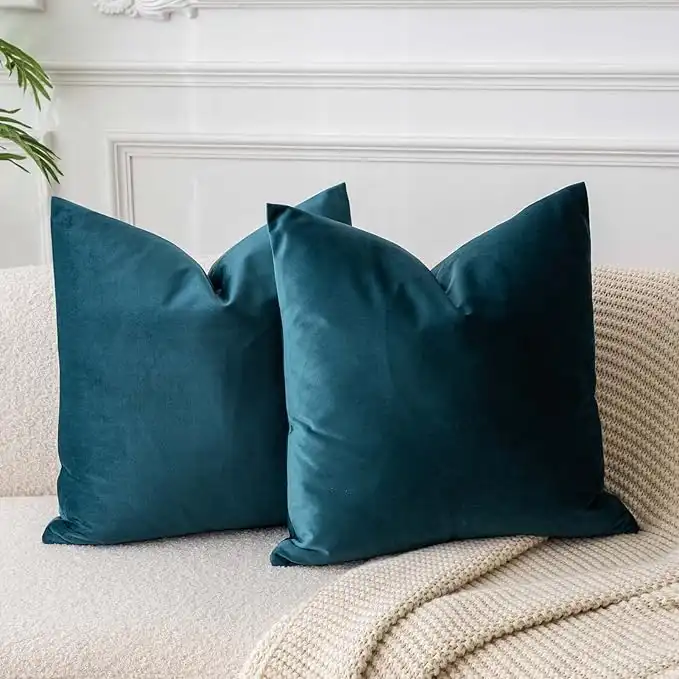 amazon.aeJUSPURBET Peacock Blue Velvet Throw Pillow Covers 22x22 inch Set of 2 for Living Room Couch Bedroom Decorative Luxury Soft Cushion Cases with Invisible Zipper