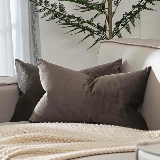 JUSPURBET Ash Lumbar Velvet Throw Pillow Covers 16x24 inch Set of 2 for Living Room Couch Sofa Bedroom Decorative Rectangle Solid Soft Cushion Cases with Invisible Zipper