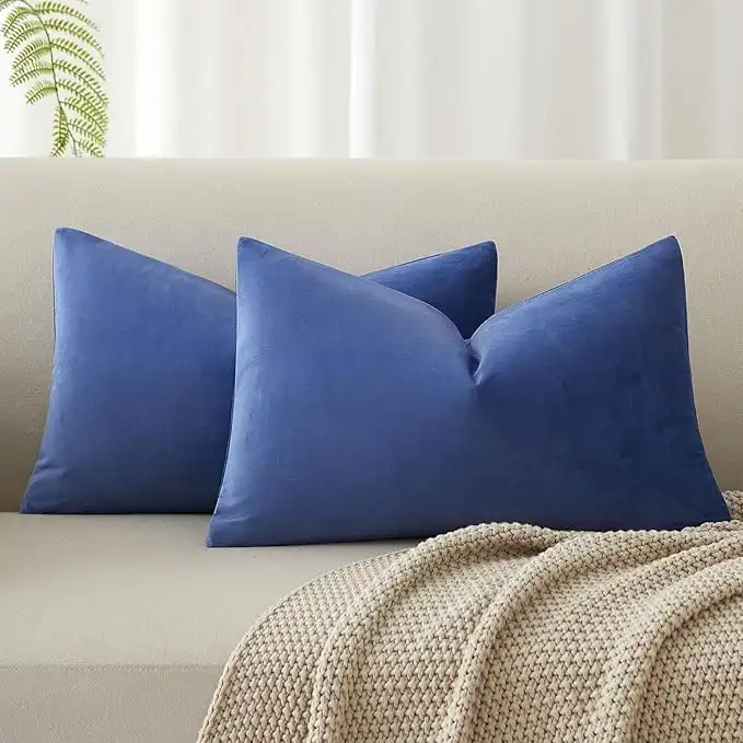 JUSPURBET Blue Lumbar Velvet Throw Pillow Covers 12x20 inch Set of 2 for Living Room Couch Sofa Bedroom Decorative Rectangle Solid Soft Cushion Cases with Invisible Zipper — Price History & Tracker | DeserTracker