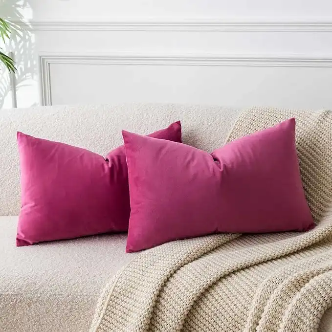 JUSPURBET Rose Red Lumbar Cushion Velvet Cushion Covers 30 cm x 50 cm Set of 2 for Living Room Couch Sofa Bedroom Decorative Rectangular Solid Soft Cushion Covers with Invisible Zip
