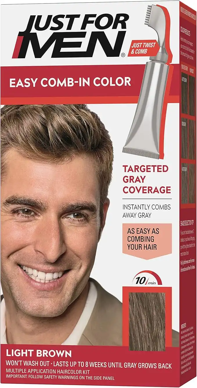 Just For Men Easy Comb-In Color Mens Hair Dye, Easy No Mix Application with Comb Applicator - Light Brown, A-25, Pack of 1 — Price History & Tracker | DeserTracker