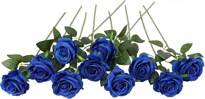 JUSTOYOU 10 Pack Silk Artificial Rose Flowers Bridal Bouquet Flowers (Blue) — Price History & Tracker | DeserTracker