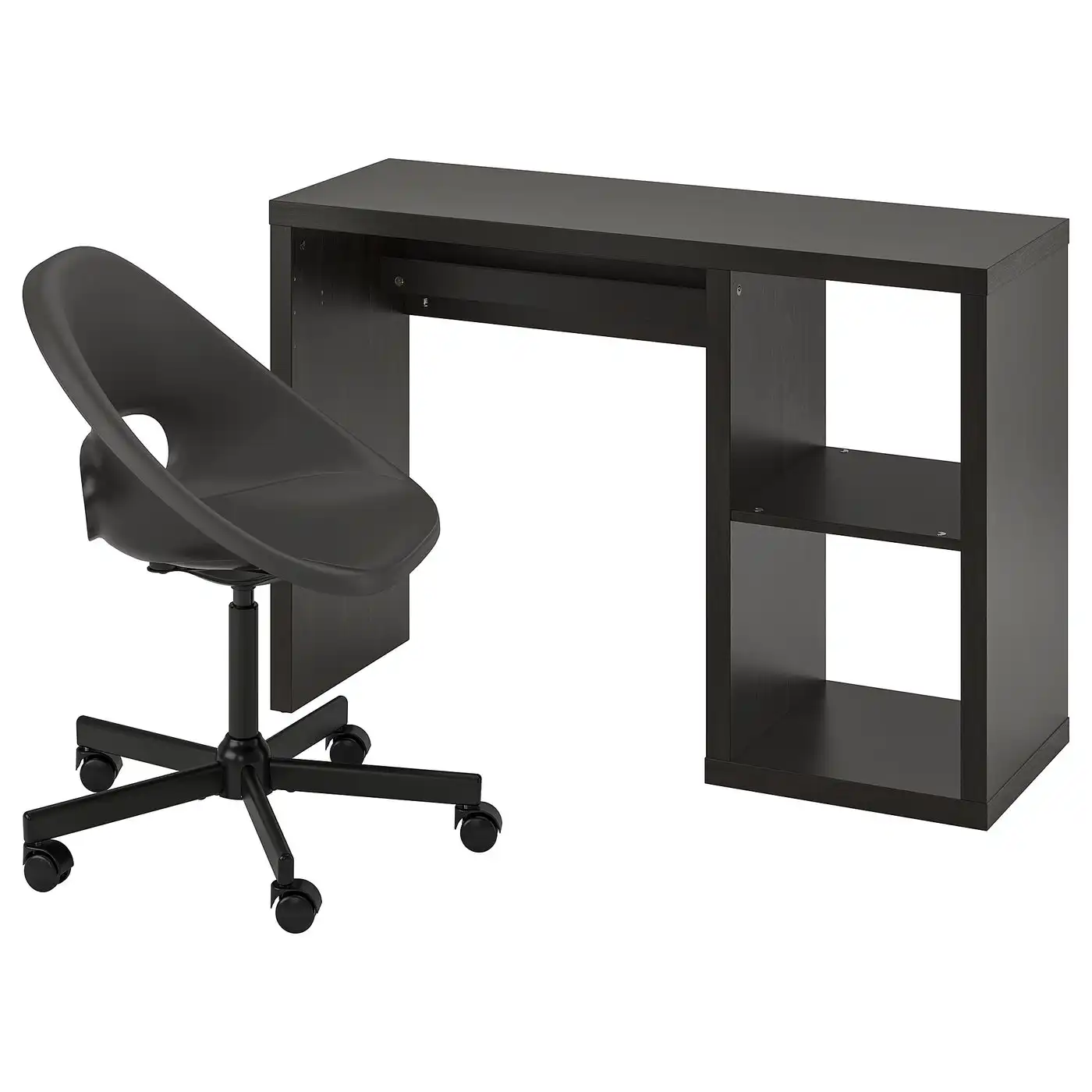 KALLAX / ELDBERGET Desk and chair - black-brown/dark grey black