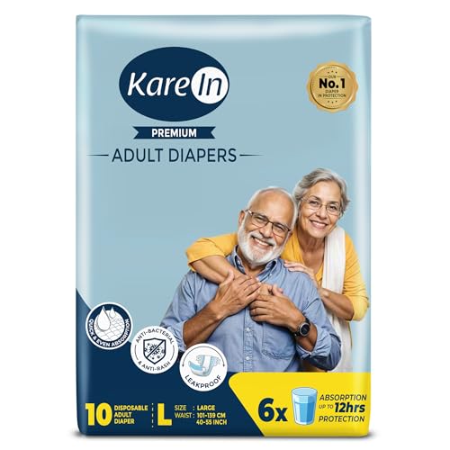 KareIn Premium Adult Diapers, Large, Waist Size 101-139 Cm (40"-55"), 10 Count, Tape Style, Unisex, High Absorbency, Leak Proof, Wetness Indicator — Price History & Tracker | DeserTracker