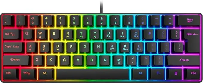 KASTWAVE 60% Wired Gaming Keyboard, RGB Backlit Ultra-Compact Mini Keyboard, Waterproof Mini Compact 61 Keys Keyboard for PC/Mac Gamer, Typist, Travel, Easy to Carry on Business Trip(Black)
