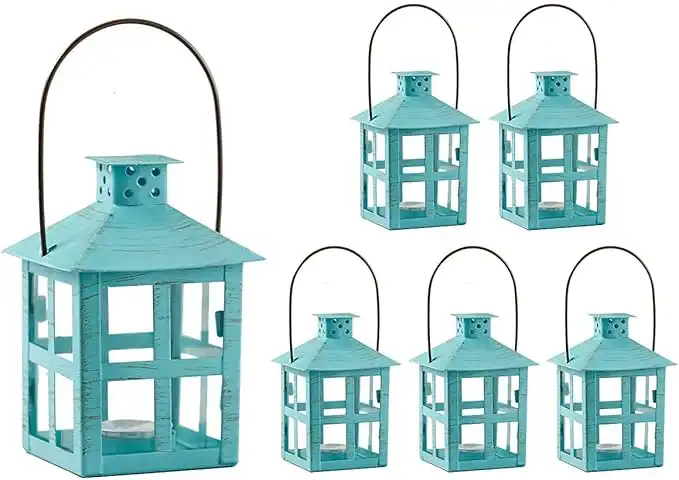Kate Aspen Mini Decorative Lantern - 6PCS - Vintage Metal Tealight Candle Lanterns, Centerpiece for Wedding Table, Accent Piece & Party Favor, Turquoise — Price History & Tracker | DeserTracker