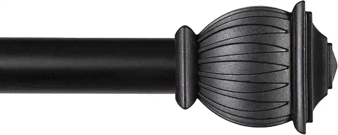 Kenney KN71708 Beckett Soft Square End Standard Decorative Window Curtain Rod, 28-48" Adjustable Length, Black Finish, 5/8" Diameter Steel Tube, 1-Pack