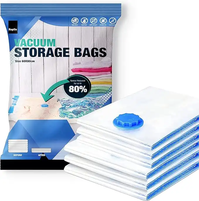 amazon.aeKEPLIN Vacuum Storage Bags | Maximise Space and Store Clothes, Bedding, Towels, Duvet & Pillow | Space Saver Air Suction Bag with Secure Double Zip + Valve | 6 Pack Large (60cm x 80 cm)