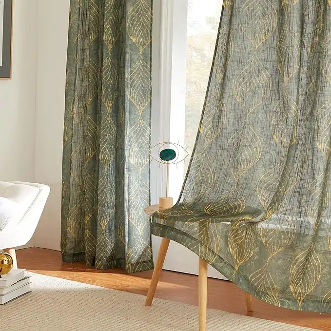 KGORGE Semi Sheer Curtains - Linen Like Curtains 63 inch Length Yellow Curtains Drapes Leaf Design Light Glare Filtering Window Panels for Bedroom Living Room Bathroom, 50 x 63 in, 2 Pcs, Olivenite — Price History & Tracker | DeserTracker