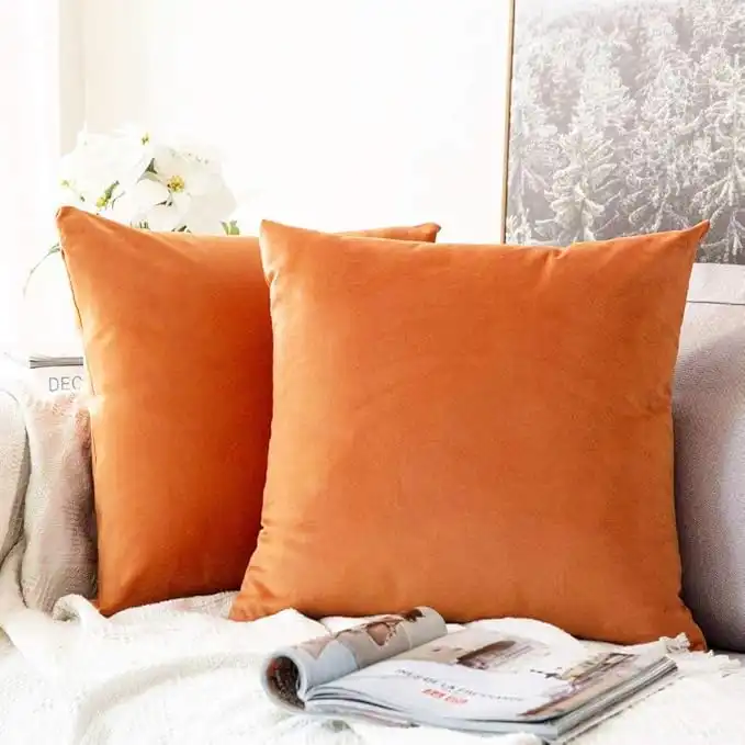 amazon.aeKhooti Two-Sided Washable Velvet Pillow Cover - 16 x 16 Inches / 40 x 40 cm - Pack of 2 - Orange - Soft Pillow Covers Cushion Covers Case for Sofa Bedroom Livingroom Chair Car, Cushion Cover