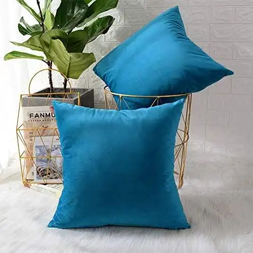Khooti Velvet 220 TC Cushion Cover, 10X10 Inches (Sea Blue)(Pack Of 2)