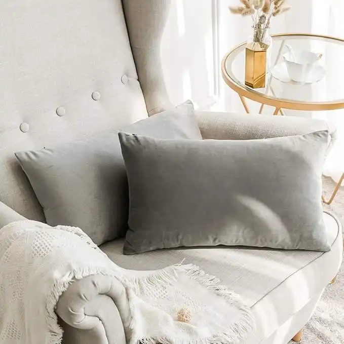 Khooti Velvet 220 TC Cushion Cover, 18X28 Inches/45X70 Cm (Light Grey)(Pack Of 2) — Price History & Tracker | DeserTracker
