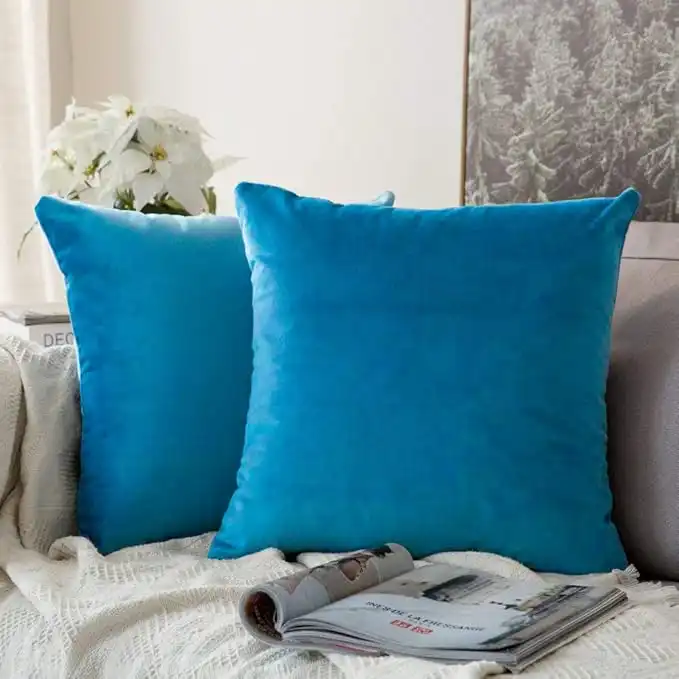 Khooti Velvet 220 TC Cushion Cover, 8X8 Inches/20X20 Cm (Bondi Blue)(Pack Of 2)
