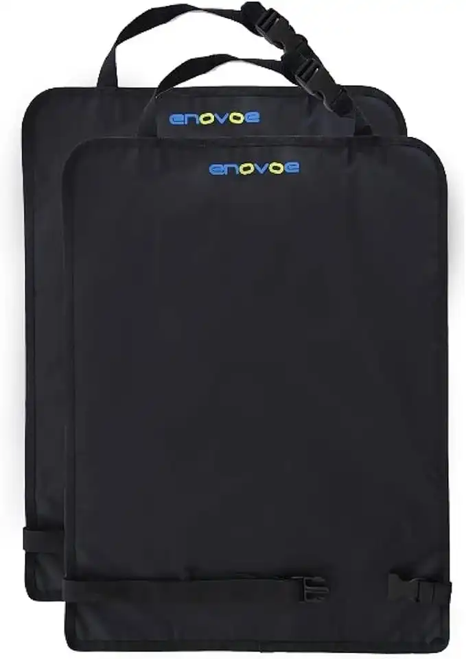Kick Mats - 2 Pack - Premium Quality Car Seat Protector Mat Best Waterproof Protection of Your Upholstery from Dirt, Mud, Scratches - Extra Large Car Seat Back Covers by Enovoe, black
