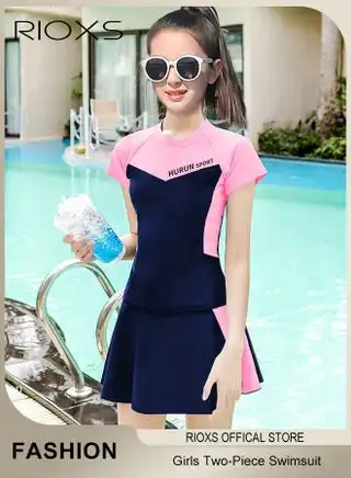noon.comKids Watersports Clothing Girl's Swimsuits, Kids Two-Piece Rashguard Swim Set, Short Sleeve Swimming Top And Shorts, Kids Swimwear For Water Sports, Quick Dry Bathing Suits, Sun Protection Swimwear For Beach/ Pool/ Water Park