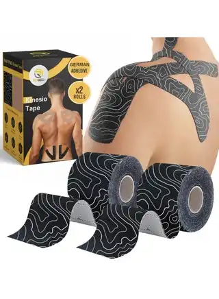 noon.comKinesiology Tape x2 Pcs - Sweatproof Kinesio Tapes with Strong Japenese Adhesion - Reduce Muscle Pain, Ease Joints Inflammation, Better Blood Flow - 5cm x 5Meters (Black)