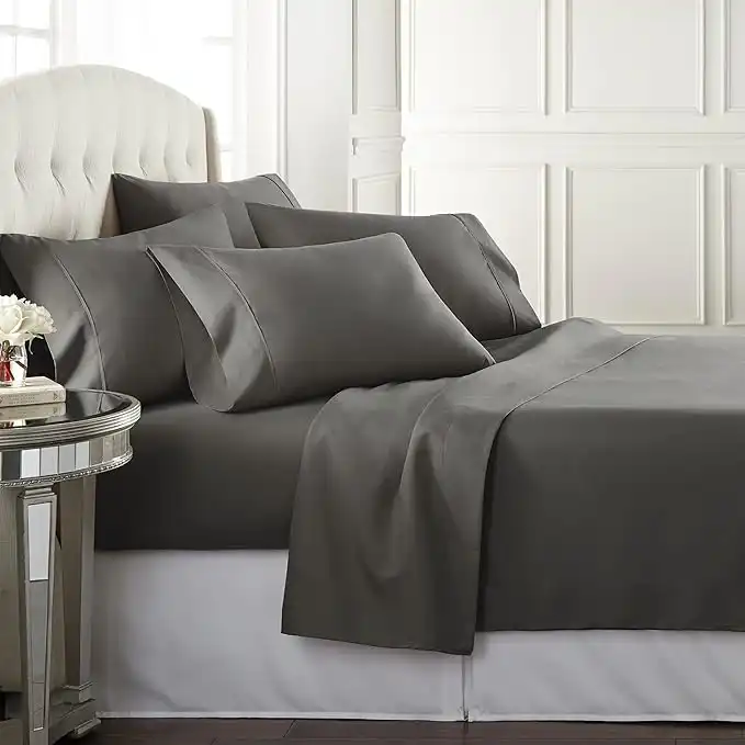 amazon.aeKing Sheet Set 6 Piece Hotel Quality Bed Sheet w/ 4 Pillowcases - Microfiber Sheet Sets with Deep Pockets, Breathable Cooling Wrinkle Free, Machine Washable 6 Pc Sheets for King Size Bed, Gray