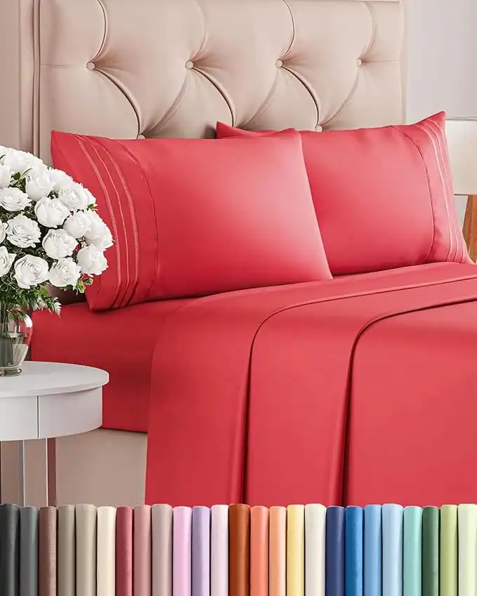 amazon.aeKing Size 4 Piece Sheet Set - Comfy Breathable & Cooling Bed Sheets Set - Hotel Luxury Bedding for Women, Men, Kids, Teens, Boys and Girls - Deep Pockets, Ultra-Soft & Wrinkle Free - Oeko-Tex - Red