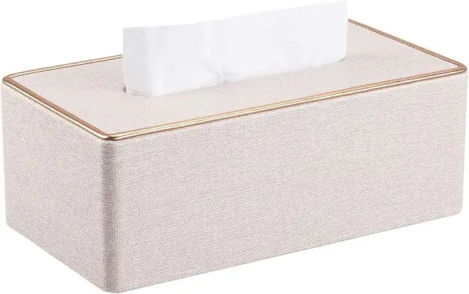 KINGFOM Rectangular PU Leather Tissue Box Holder, Facial Tissue Case Napkin Dispenser for Home Office Car Automotive Decoration with Gold Line(Pearl White-L) — Price History & Tracker | DeserTracker