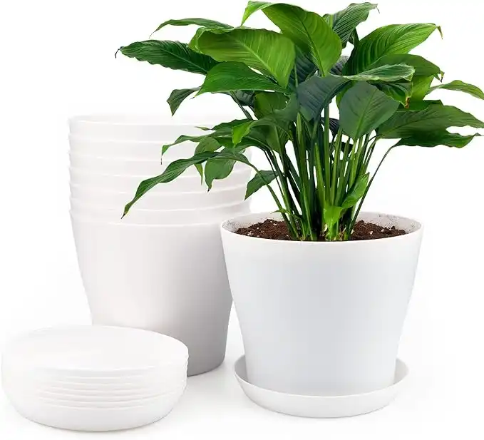 KINGLAKE Pack of 8 White Plastic Flower Pots Round Large 17 cm Plastic Plant Pots with Pallet/Trays for Balcony/Office/Home Decoration — Price History & Tracker | DeserTracker