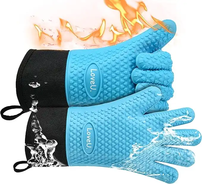 Kitchen Oven Gloves - Silicone and Cotton Double-Layer Heat Resistant Oven Mitts/BBQ Gloves/Grill Gloves - Perfect for Baking and Grilling (XL-XXXL, Blue) — Price History & Tracker | DeserTracker