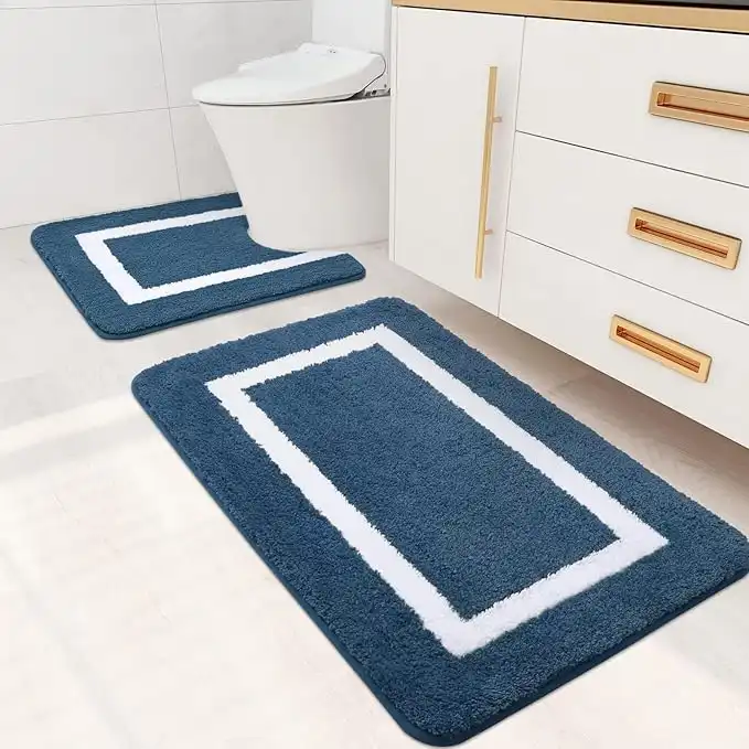 amazon.aeKitinjoy Bathroom Rugs Set 2 Pieces Soft Microfiber Bath Mat and U-Shaped Toilet Rug, Machine Wash Dry, Non Slip Absorbent Shaggy Bath Rug for Tub, Shower, Bath Room (24" x 20"+30" x 20", Navy Blue)