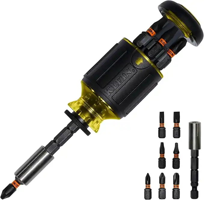 amazon.aeKlein Tools 32308 Multi-bit Stubby Screwdriver, Impact Rated 8-in-1 Adjustable Magnetic Tool with Phillips, Slotted, Square and Nut Driver