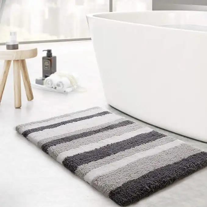 amazon.aeKMAT Luxury Bathroom Rugs Bath Mat,18"x26", Non-Slip Fluffy Soft Plush Microfiber Shower Rug, Machine Washable Carpet Quick Dry Ultra Shaggy Bath Mats for Bathroom, Tub and Shower, White-Grey