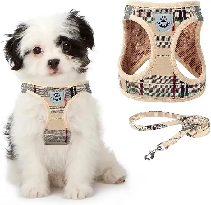 amazon.aeKOOLTAIL Soft Mesh Plaid Puppy Harness - Small Dog Harness and Leash Set, Adjustable & Comfortable Harness with Reflective Design for Puppies and Small Breeds Dogs, for Outdoor Walking (Beige)