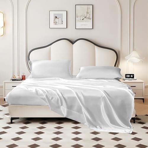amazon.aeKoreyoshi 4 PCS Satin Sheets Queen - Luxury Silk Silky Super Soft Extra Deep Pocket Queen Sheet Sets - Wrinkle & Fade Free - Deep Pocket Fitted Sheet, Flat Sheet, Pillow Cases (White, Queen)